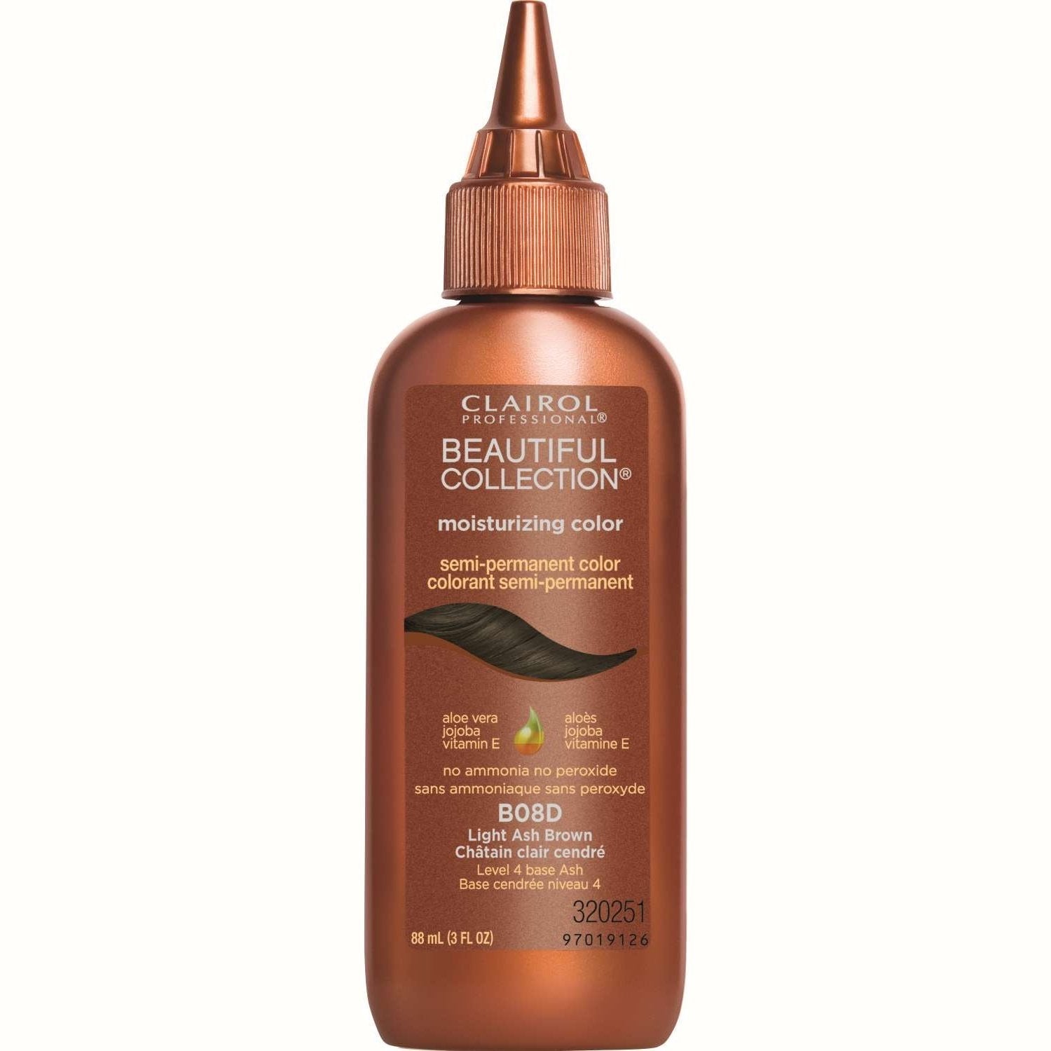 Wry of permanent hair colors Go for the semi-permanent ones The Clairol Beautiful Collection 8 Light Ash Brown 3oz is your best fix. The creamy formula packed with aloe vera extract Jojoba seed extract and vitamin E delivers your desired shade. Lasting for 8 hair washes the hair dye takes less than 30 minutes to work its charms