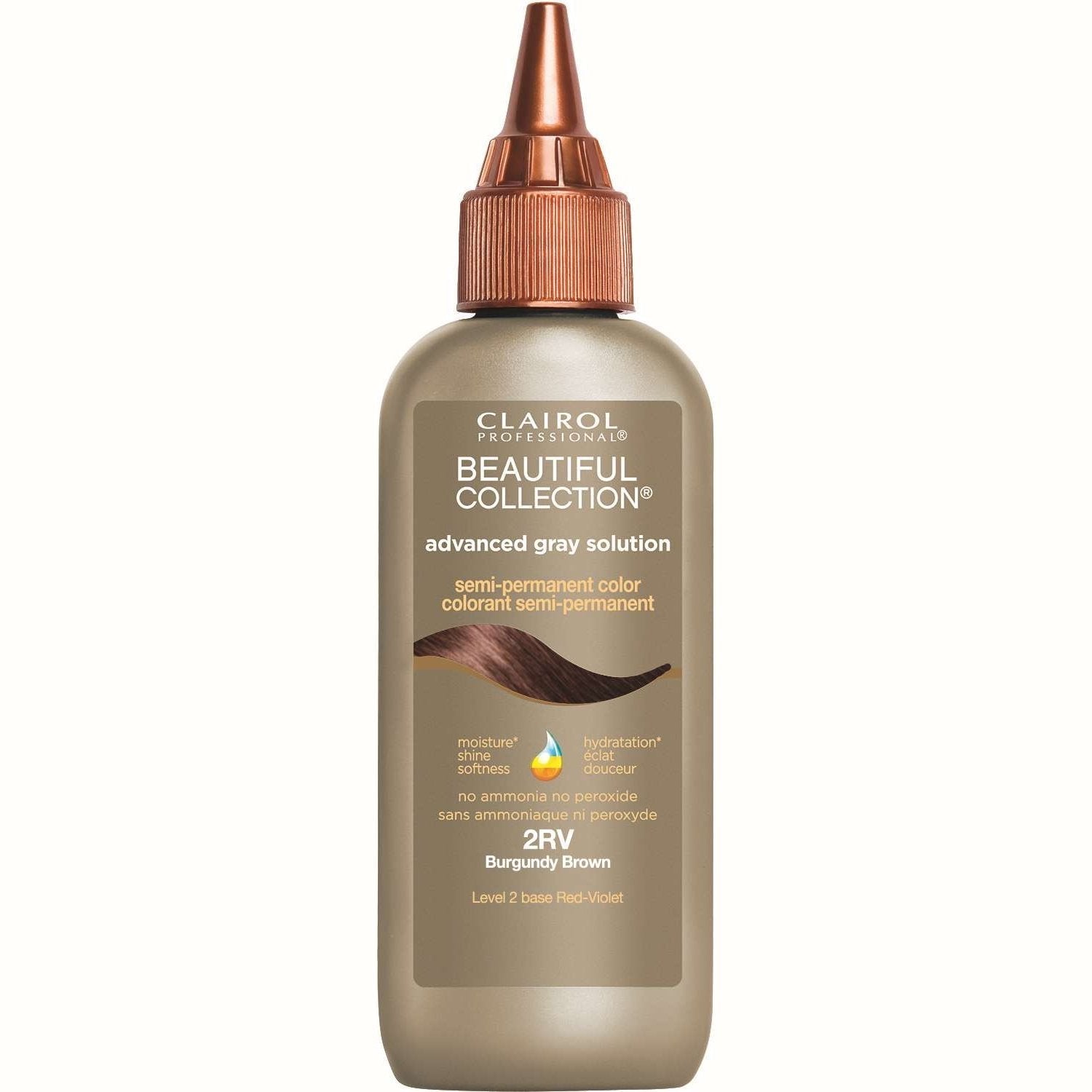 The Beautiful Collection Advanced Gray Solution 2RV in the shade Burgundy Brown is a semi-permanent hair color. It is designed to cover gray hairs and give your hair shine and moisture...